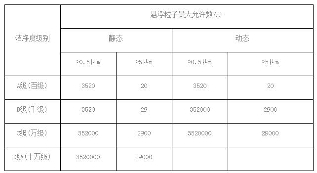 GMP(藥品生產質量管理規范2010)空氣懸浮粒子的標準: