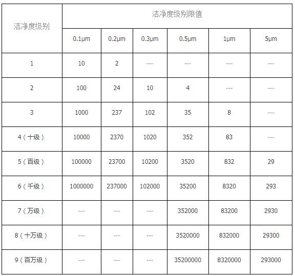 GB(潔凈廠房設計規范)空氣懸浮粒子的標準: