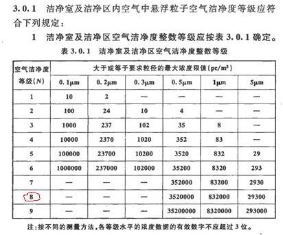 GB 50073-2013潔凈廠房設計規范里面的10萬及凈化車間標準參考8,具體如下圖: