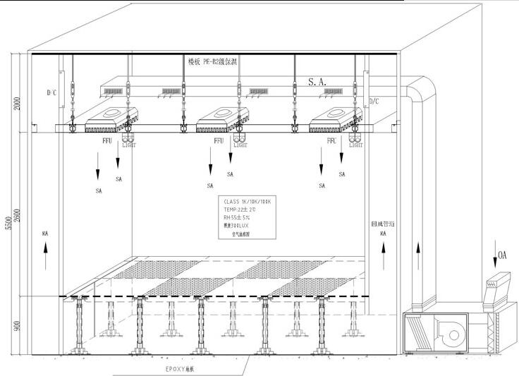 壓差:主車間對相鄰房間≥5Pa平均風速:10級、100級0.3-0.5m/s;